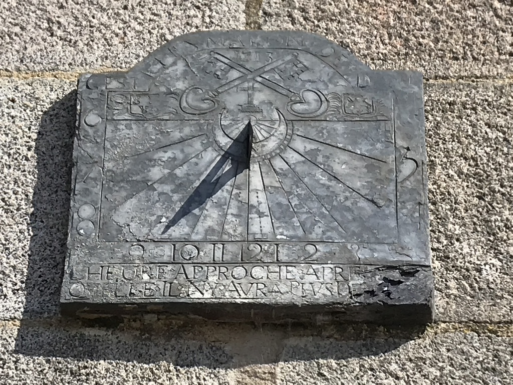 Un cadran solaire a été réalisé en ardoise, mettant en valeur ce matériau traditionnel pour la conception de l’ouvrage. La conception de ce cadran solaire s’est appuyée sur la reproduction et l’inspiration d’un modèle ultérieur déjà présent sur l’édifice. Cette démarche vise à assurer une continuité esthétique et historique.